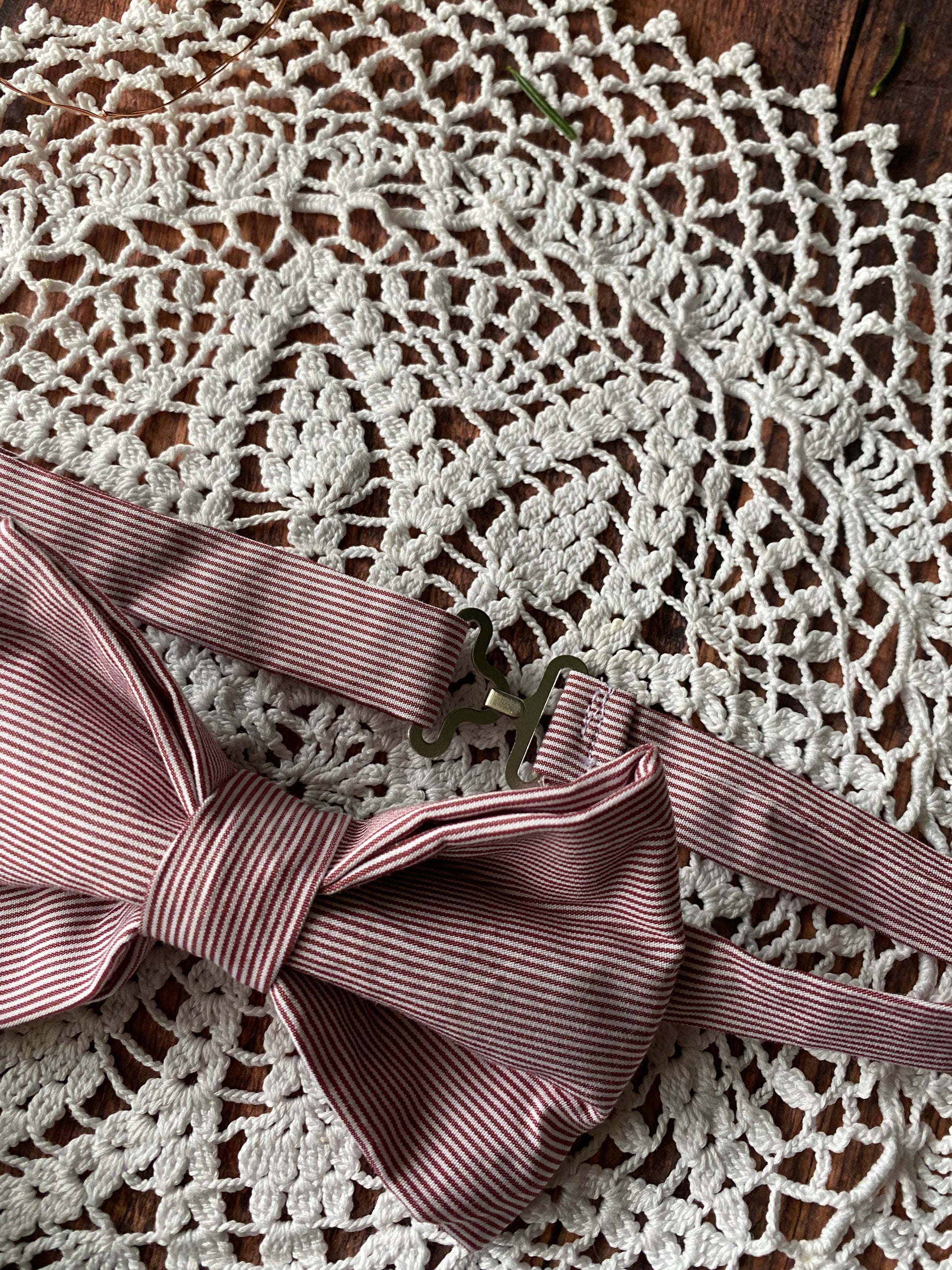 Assortiment pour garçon ou homme a rayure rouge sur fond blanc.