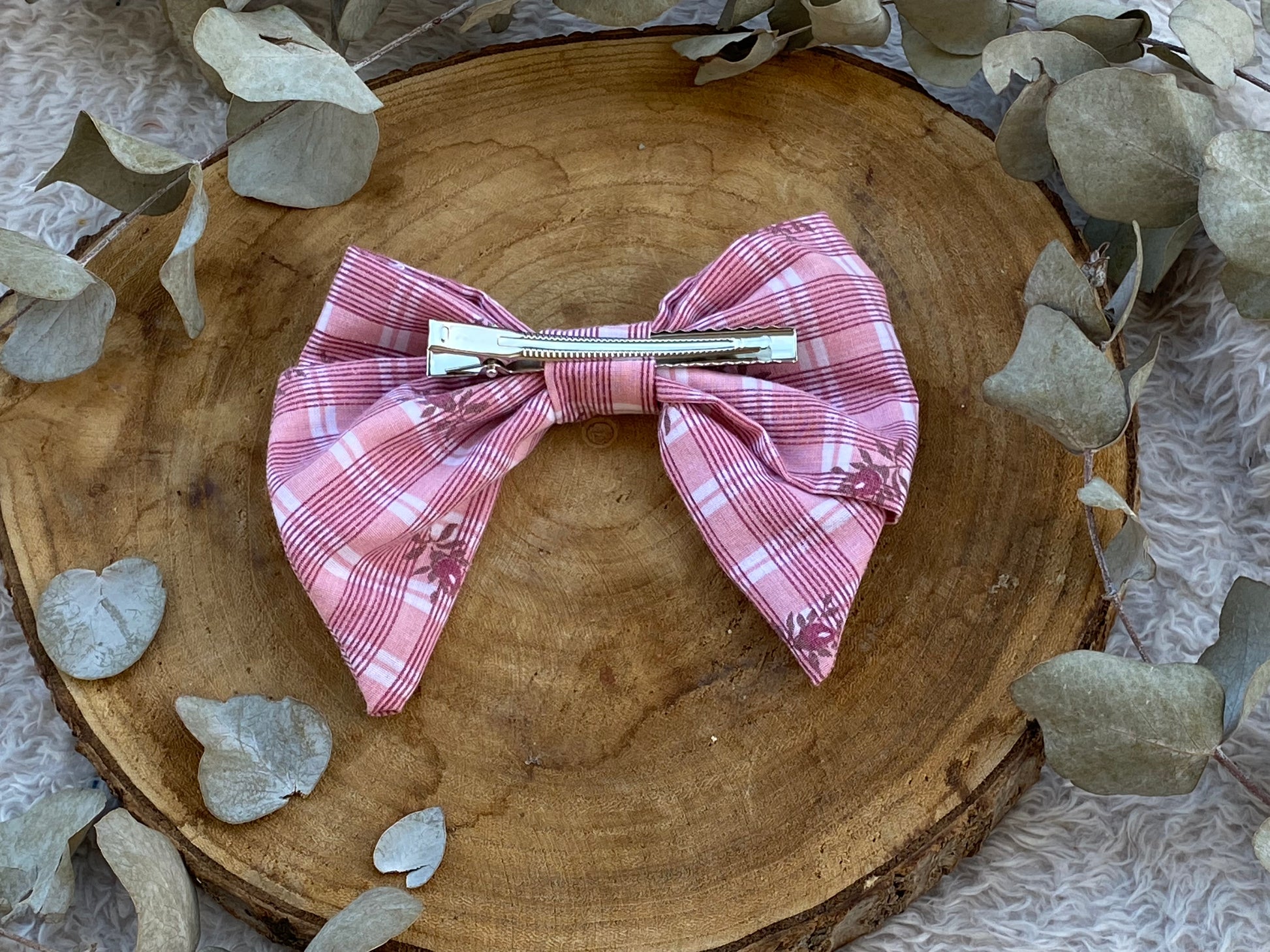 Barrette noeud Ă carreau rose er fleur đ