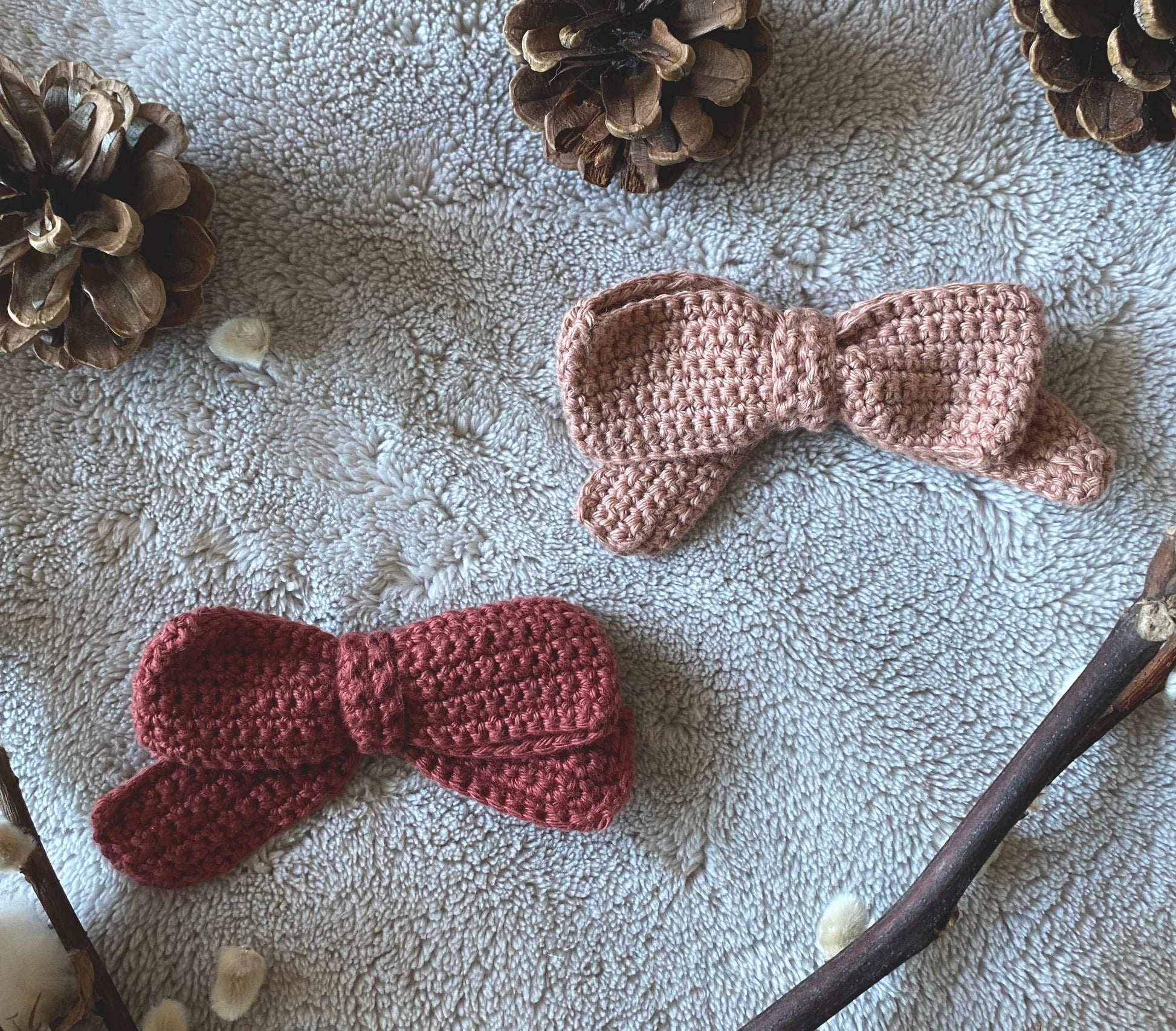 Barrette noeud en crochet beige ou rouge 🎀