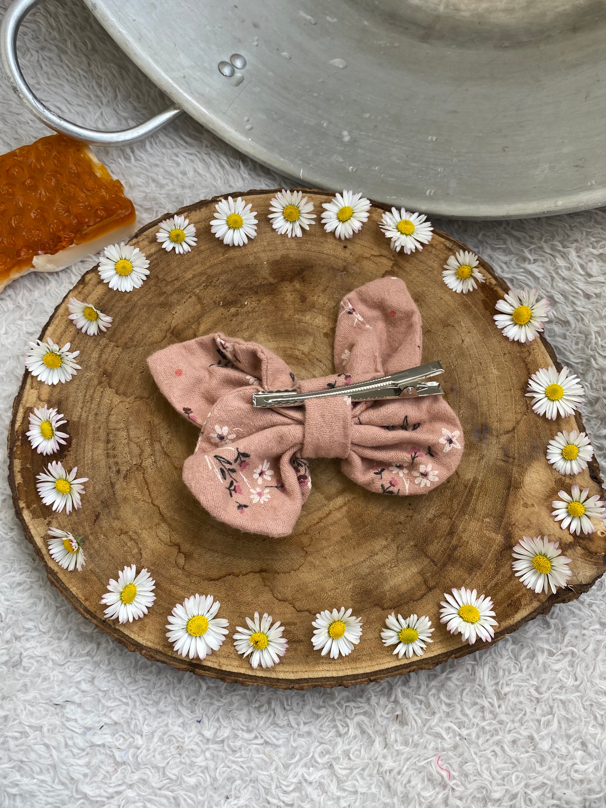 Barrette papillon en flannelle rose 🦋
