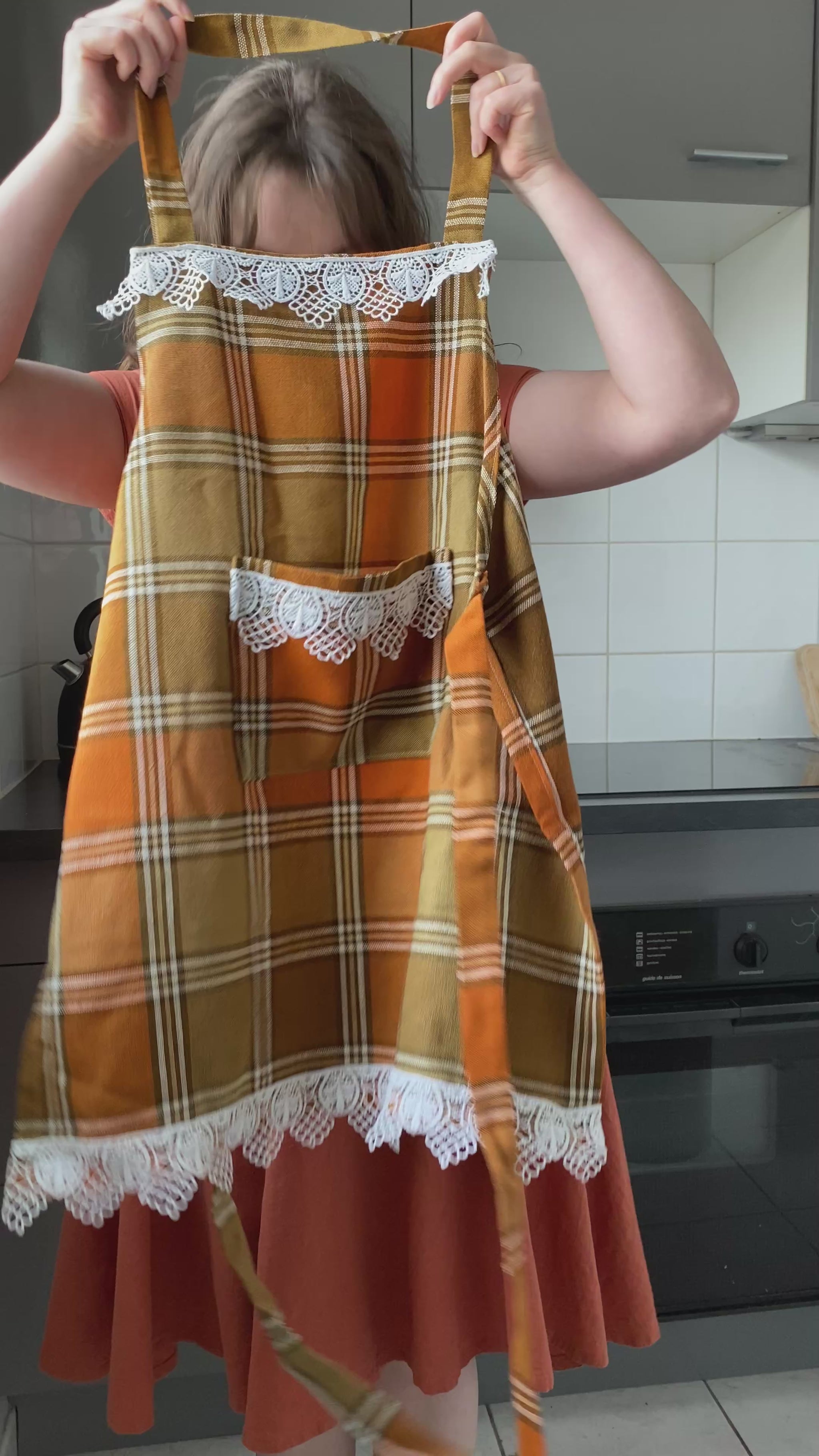 Tablier tartan orange et dentelle 🍛